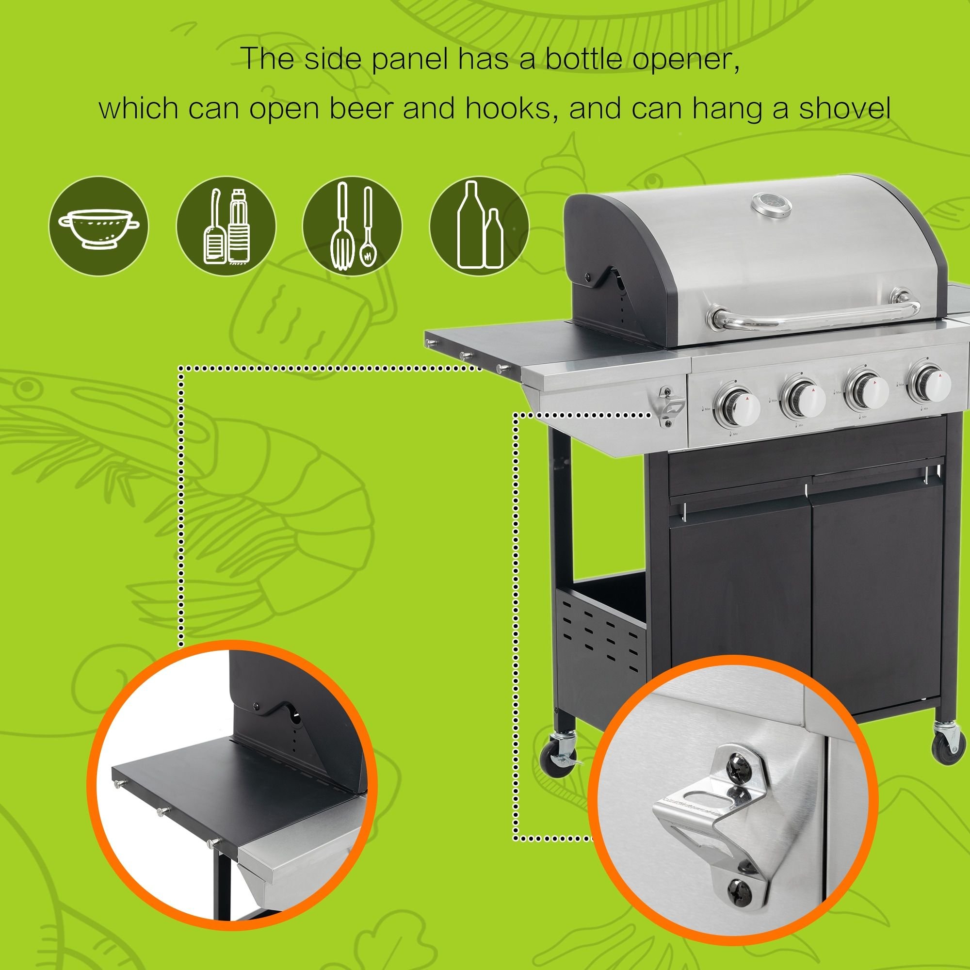 Propane Grill 4 Burner Barbecue Grill Stainless Steel Gas Grill with Side Burner and Thermometer for Outdoor BBQ, Camping Propane Grill 4 Burner Barbecue Grill Stainless Steel Gas Grill with Side Burner and Thermometer for Outdoor BBQ, Camping Propane Grill 4 Burner Barbecue Grill Stainless Steel Gas Grill with Side Burner and Thermometer for Outdoor BBQ, Camping