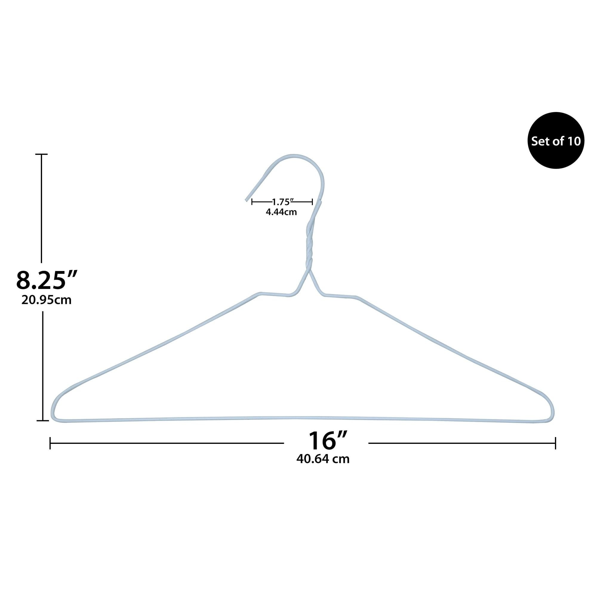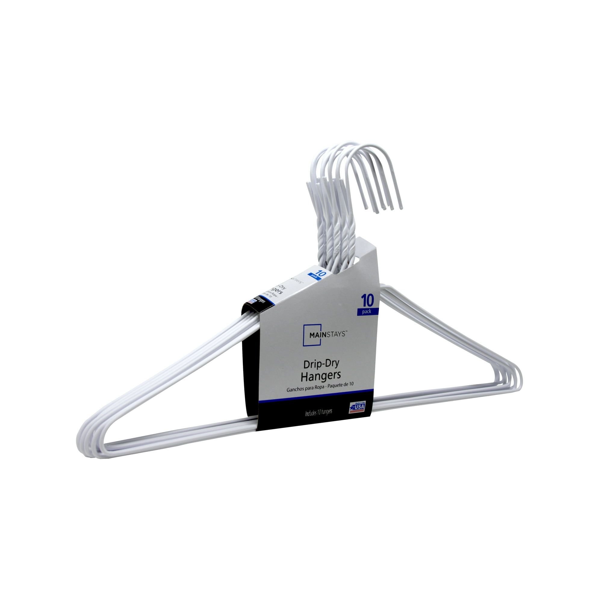 Drip Dry Plastic Coated White Wire Hangers, 10-Pack, are a must have product to have in your home! Use them to keep your clothes neat and organized in the closet, dorm, or laundry room. Eliminate the need of folding your clothing and maximize your storage space. These hangers can be used every day for tidying up the closet and keeping favorite clothing items visible and off of the floor. They feature a slimmer profile design than regular versions, to maximize your closet space while still keeping your clothing wrinkle-free and secure. They're ideal for hanging heavy garments and wet clothes to drip dry. Use for pants, skirts, tops, blouses, t-shirts, or coats. Offered in a pack of 10, these wire hangers have a neutral finish that complements almost any style. With the plastic coating, they're also rust and corrosion resistant. To clean, wipe gently with a damp cloth. Perfect and good for teen ages and adult ages.