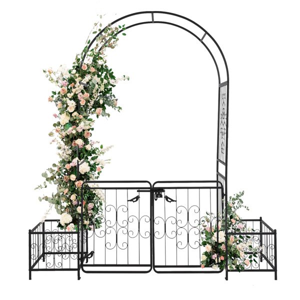 198.5*50*219cm Courtyard Arc Top With Door With Planting Frame Iron Art Iron Arch Black 198.5*50*219cm Courtyard Arc Top With Door With Planting Frame Iron Art Iron Arch Black 198.5*50*219cm Courtyard Arc Top With Door With Planting Frame Iron Art Iron Arch Black