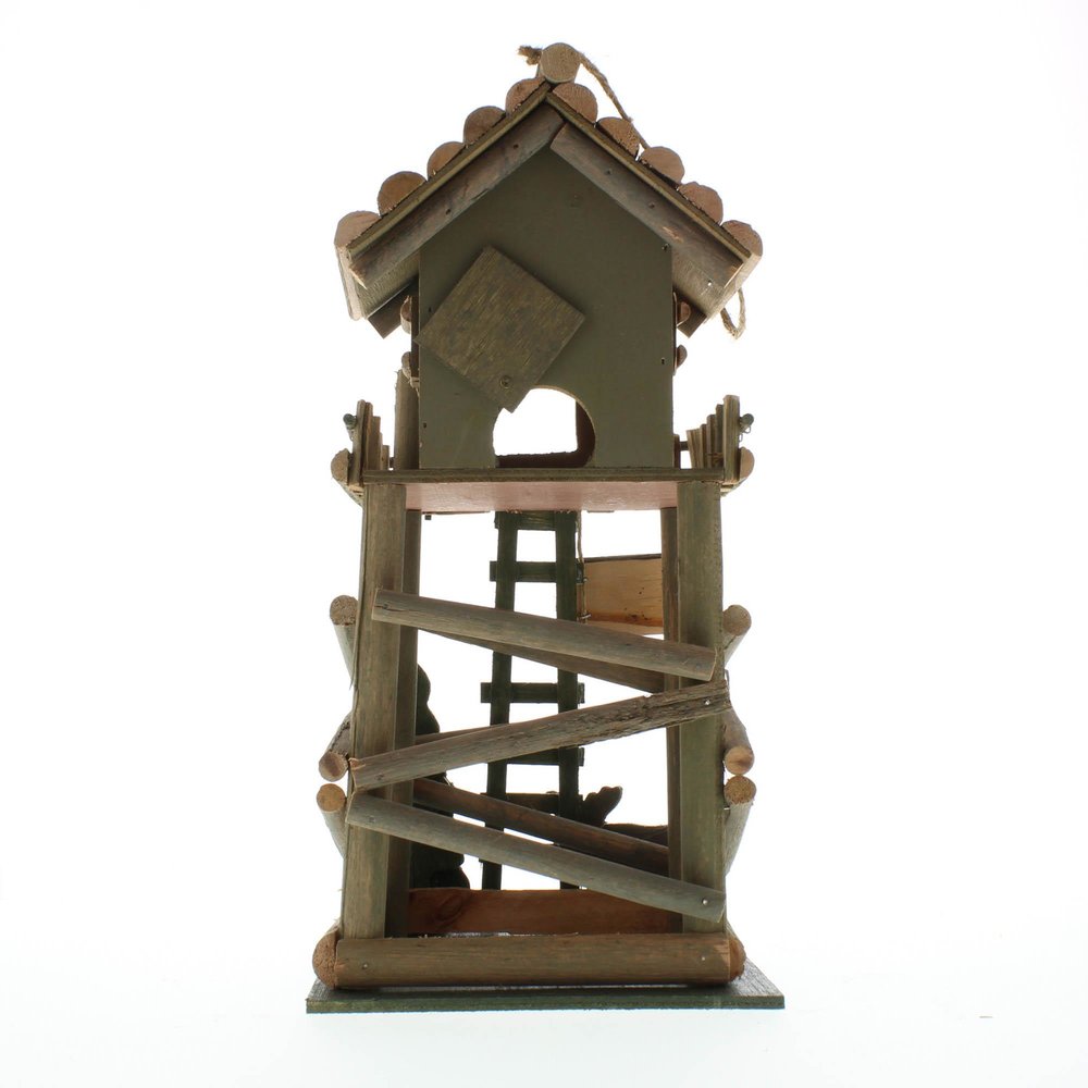 • Enjoy the great outdoors and add a little charm to your tree with this Ranger Station birdhouse. The lofty nest features a moose cutout, pine trees, and a tall green ladder that leads to a cozy cabin.